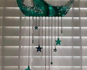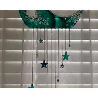 Made with resin, holo silver glitter, crushed glass and Aura coated Quartz points!